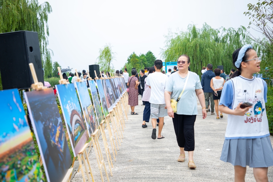 这片湿地公园就是由昔日的鱼虾塘改建而成,总面积达106.5亩,凭借芦苇、水杉、栈道、亭台等元素勾勒出多样区块迷宫,本就是游客乘船、步行或骑行打卡的热门地,如今更化身一座天然“水上T台”,让走秀与自然景致相映成趣。